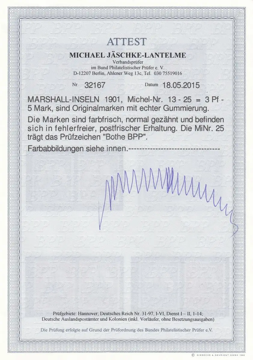 Marshall Inseln MiNr. 13 - 25, postfrisch, ** mit BPP Attest, einwandfrei