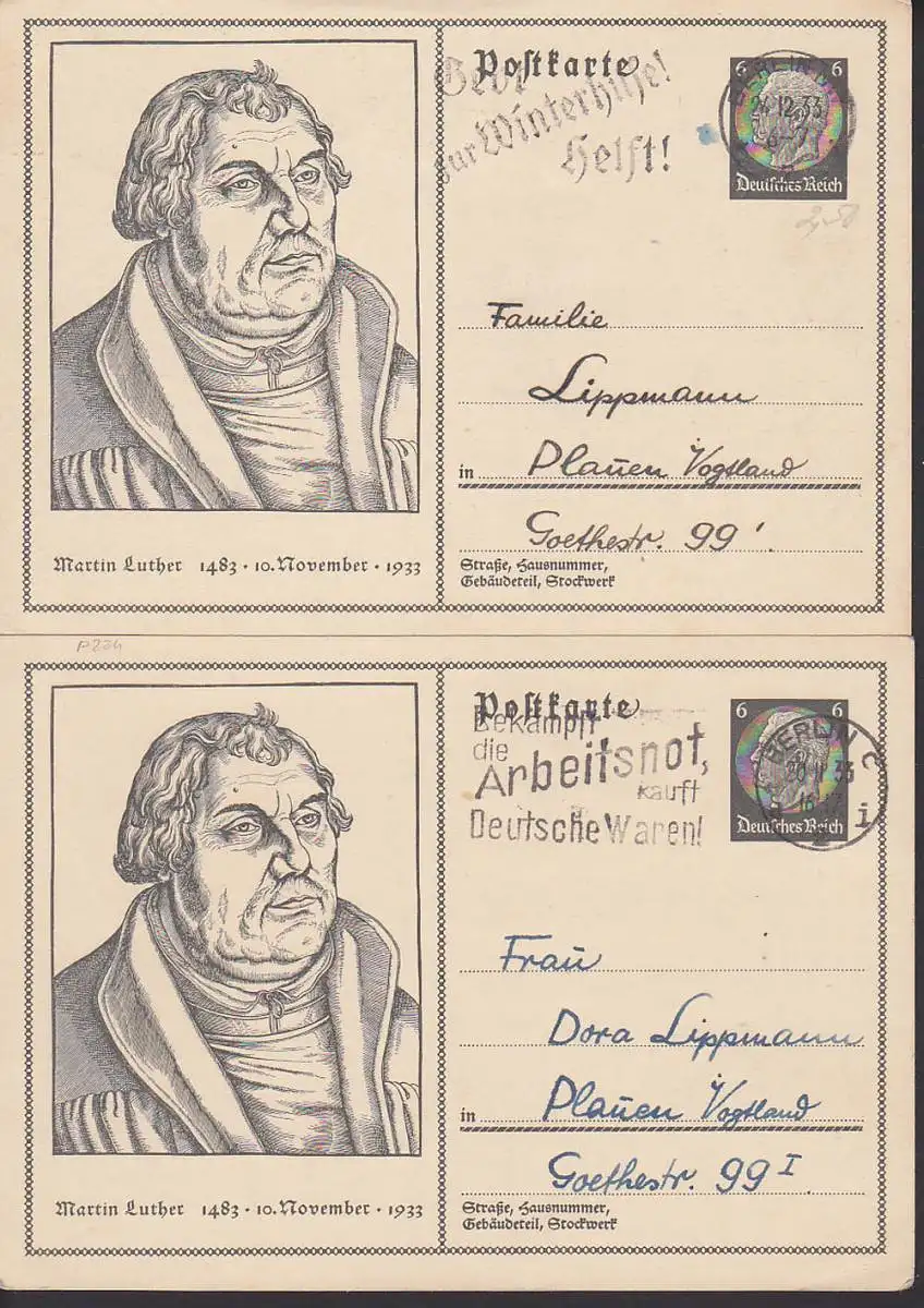 Martin Luther, zwei GA P224, MWSt. Gebt zur Winterhilfe! Helft!