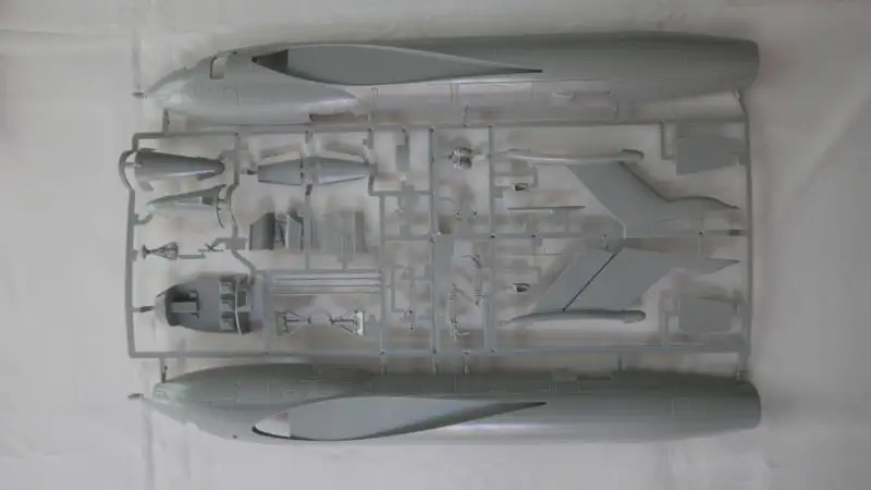 Einzelteile (Plastikbauteile) sind noch am Rahmen fixiert, ohne Sichthülle.