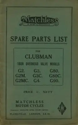 Matchless 1938 Clubman Overhead valve Models Ersatzteilliste