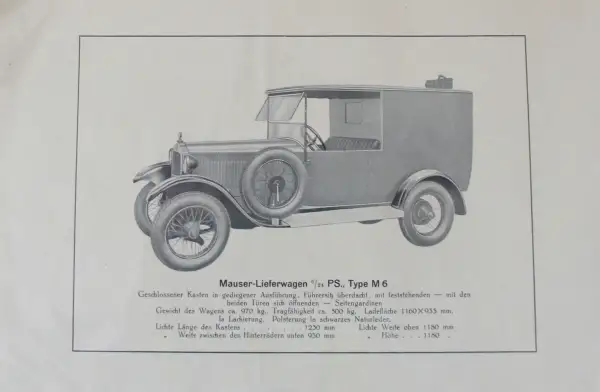 Mauser Typ M 6/24 PS Lieferwagen Modellprogramm 1926 Automobilprospekt (4945)
