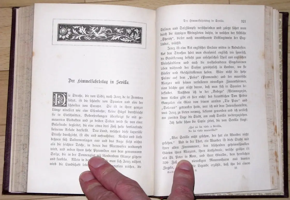 guter Zustand, geringe Gebrauchs- und Alterungsspuren: Einbandkanten teils etwas beschabt / gering abgenutzt - Titel mit überklebter Stelle - Seiten überwiegend sauber und ordentlich, gelegentlich gering stockfleckig, Englische Studien - London - Ein ,,superiores« Boarding-House - Die obern Zehntausend - Die Demokratie in England - Englische Religiosität und Sonntagsfeier - Mitternachtsprediger - Der Derbytag in Epsom - Das englische Theater - Die Season - Die Seaside - An der Wiege Shakespeare's - Französische Provinzfahrten - Paris und die Provinz - Im Burgunderlande - Lyon - Die Heimat der Troubadours - Südfranzosen und Nordfranzosen - Marseille - Der Sozialismus in Frankreich - Bilder aus Spanien - Dissolving Views - Die Alhambra - Der Fandango - Der Himmelfahrtstag in Sevilla - Spanische Zigeuner - Wanderungen in Córdoba - Andalusisches Städteleben - Spanische Zeitungen - Wahrheit und Dichtung, Leinen, 391 Seiten