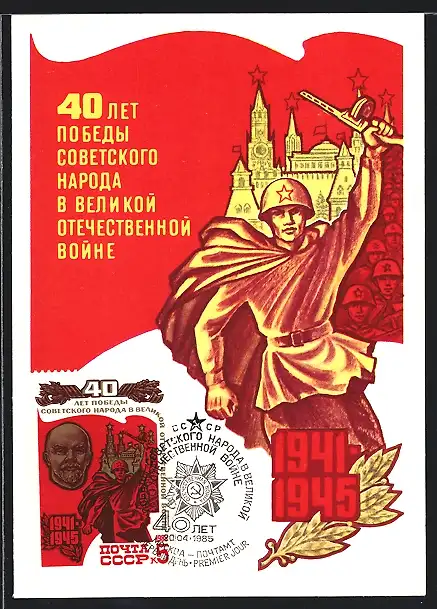 Maximum-AK 40 Jahre Sowjetischer Sieg im 2. Weltkrieg 1984, Russischer Soldat mit Helm und Waffe
