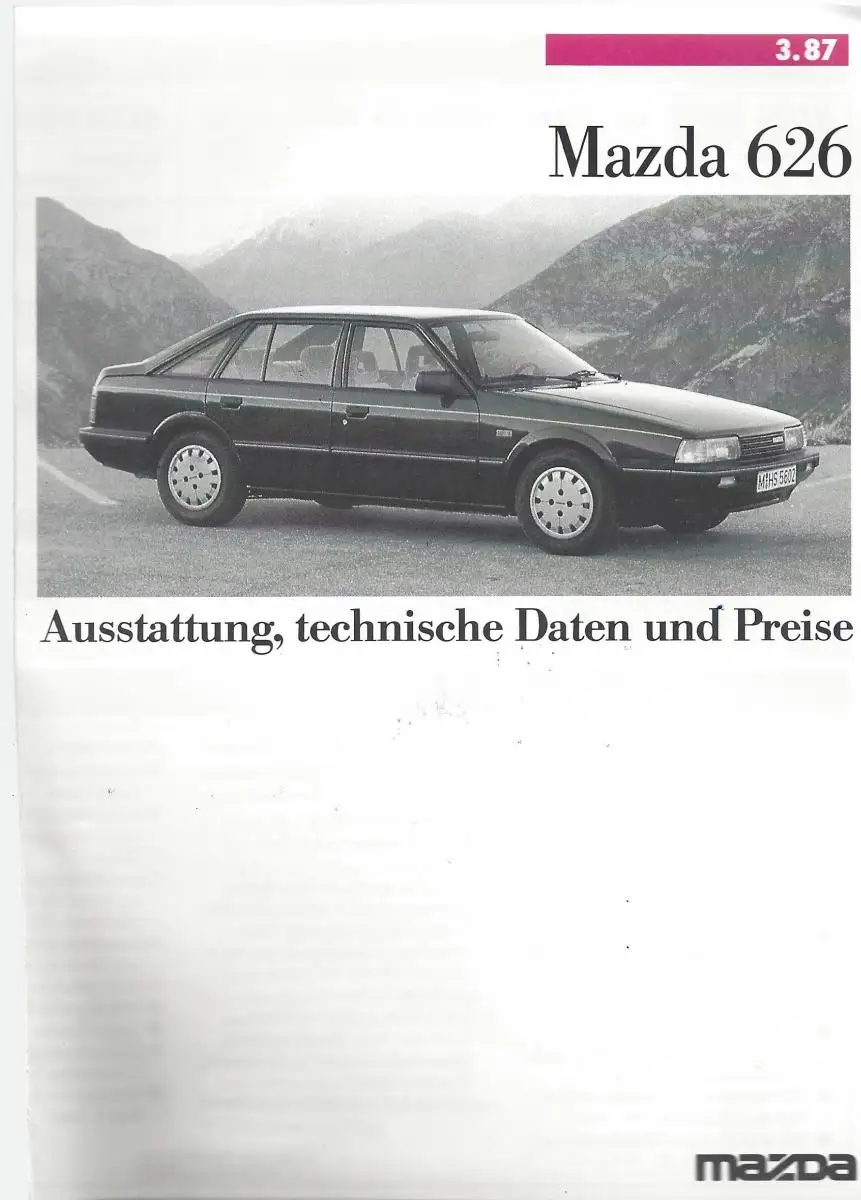 Mazda 626. Ausstattung, technische Daten und Preise. 3/1987. Prospekt.