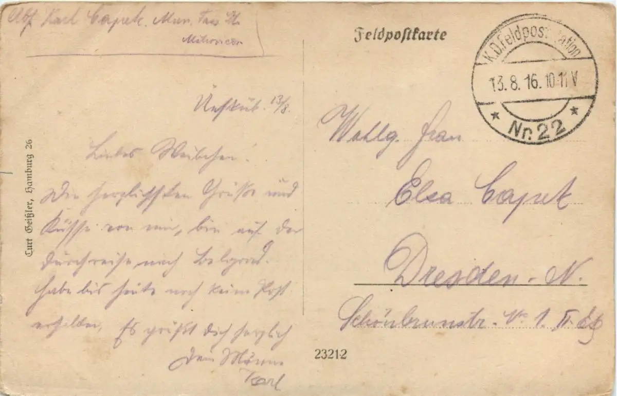 Danke. Alles Bestens. Können Sie mir allenfalls mitteilen, aus welchem Jahr die Postkarte stammt? Besten Dank.