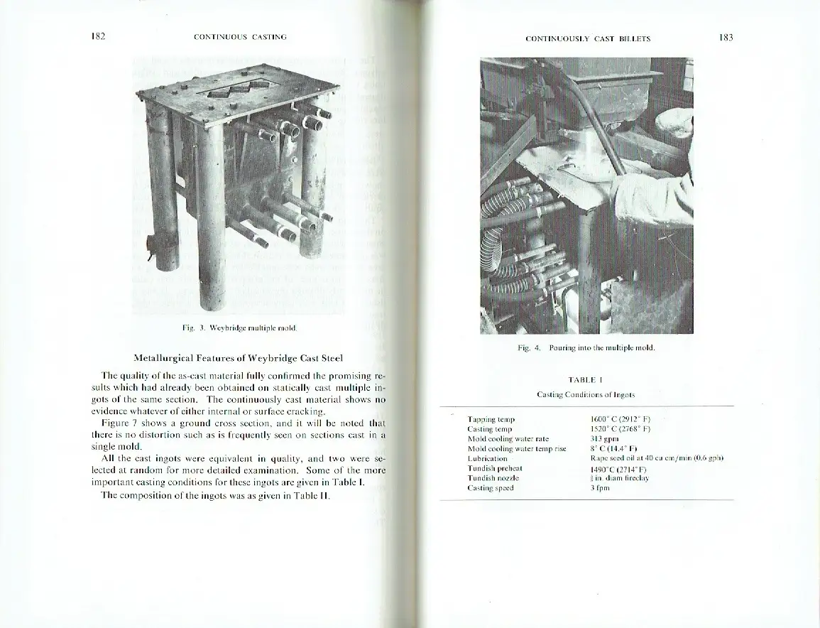 guter Zustand, Gebrauchs- und Alterungsspuren: ehemaliges Bibliotheksexemplar - Titel mit Stempeln und Notizen - Deckel innen mit angeklebtem Papierrest - Vorsatz und Schmutztitel mit weiterem Stempel - Seiten aber sauber und ordentlich, Continuous Casting - Continuous Casting in Europe — Practice and Developments, I. M. D. Halliday - Continuous Casting of Steel — The Path of Development and Current Status, B. Tarmann - Progress in Continuous Casting Stainless Steel Slabs at Atlas Steels Limited, L. Nemethy, E. Stock, and W. B. F. MacKay - Preliminary Operation of Continuous Casting of Slabs in a Top-Blown Oxygen Vessel Plant, K.-H. Bauer, W. Gerling, and M. Bock - Working of Cast Structures - Rolling Characteristics of Multiple Section Continuously Cast Billets, J. Savage and J. Pearson - Evaluation of Continuously Cast Steel for Seamless Tube Production, H. B. Emerick - Effects of Forging and Rolling on Cast Steels, C. Wells - The Effect of High Strain Rates on Case Fe-C Alloys at Hot-Working Temperatures, W. R. Lawson, R. N. Embriaco, T. B. King, and N. J. Grant, Leinen, ca. 15,5 x 23,5, 255 Seiten mit zahlreichen Bildern