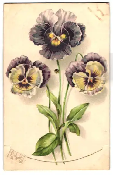 Mechanische-AK Blumen mit Neujahrsgruss