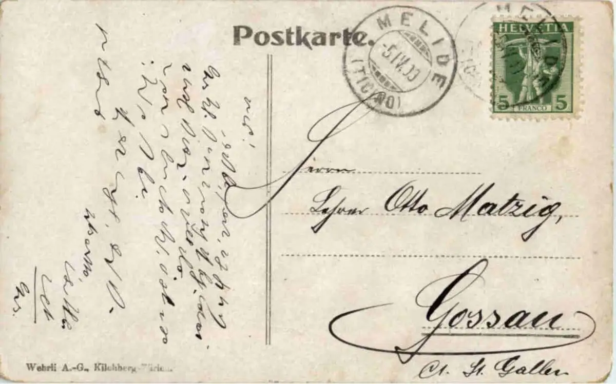 Danke. Alles Bestens. Können Sie mir allenfalls mitteilen, aus welchem Jahr die Postkarte stammt? Besten Dank.