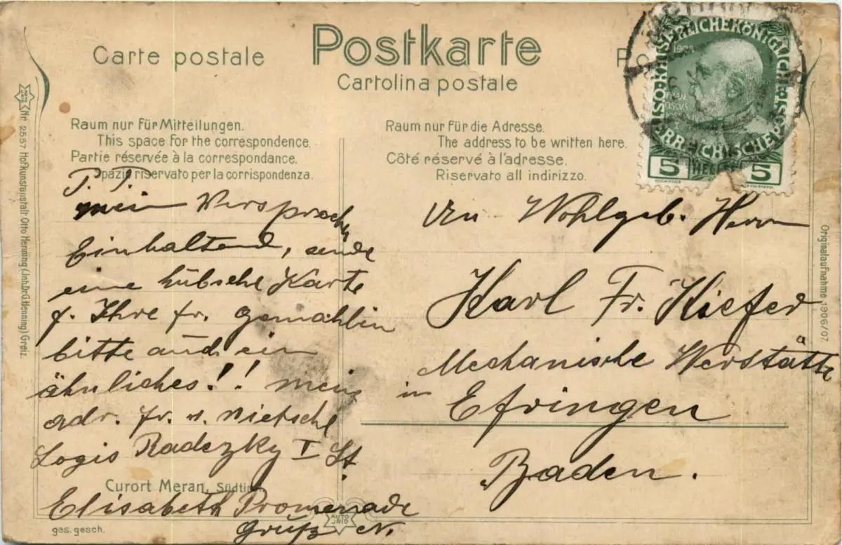 Danke. Alles Bestens. Können Sie mir allenfalls mitteilen, aus welchem Jahr die Postkarte stammt? Besten Dank.