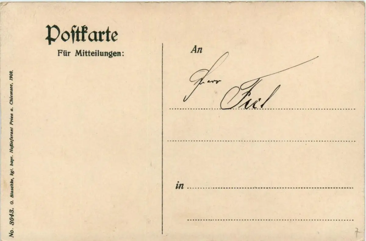 Danke. Alles Bestens. Können Sie mir allenfalls mitteilen, aus welchem Jahr die Postkarte stammt? Besten Dank.