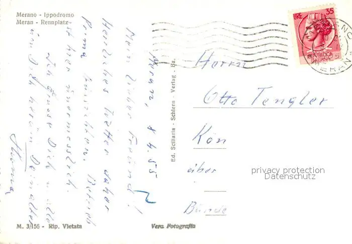 Merano_Suedtirol Rennplatz Panorama Merano Suedtirol postalisch gelaufen 1955 Erhaltung siehe scans [WerneD78] WernPID7
