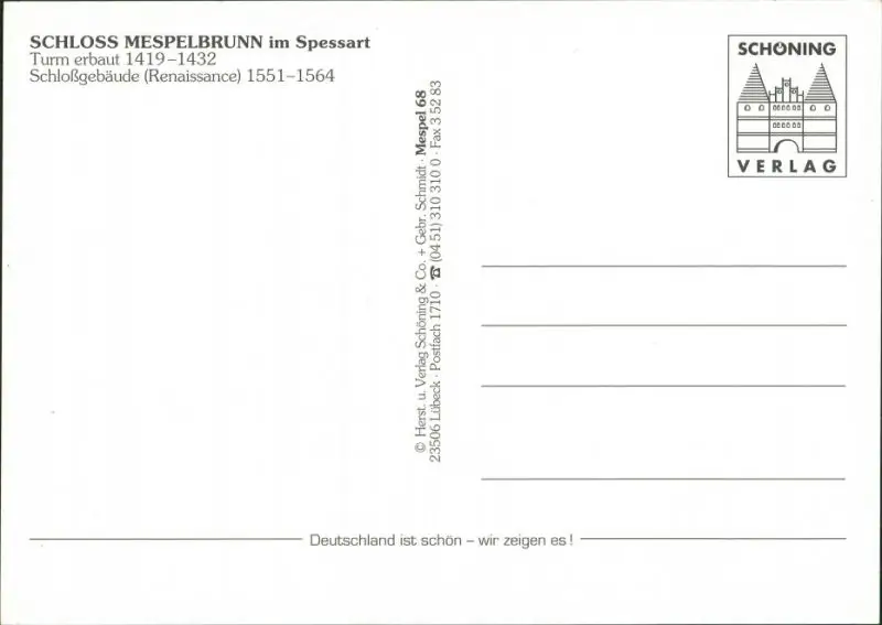 Mespelbrunn Schloßgebäude (Renaissance) 1551-1564, Turm, Castle Postcard 1996