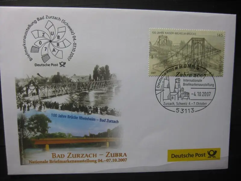 Messebrief, Ausstellungsbrief Deutsche Post: Briefmarkenausstellung Zubra, Bad Zurzach/Schweiz 2007