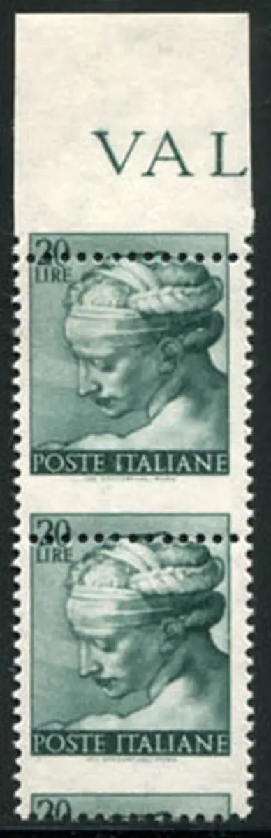 Michelangelo Lire 20 Sterne IV Sorte verschobene Verzahnung Vollgummi - Michelangelo Lire 20 Sterne IV Nr. 903/I Vertikaldrehmoment b. von f. obere stark verschobene Horizontalverzahnung - nicht katalogisiert (ev. n. 903/Im) Code 574/8