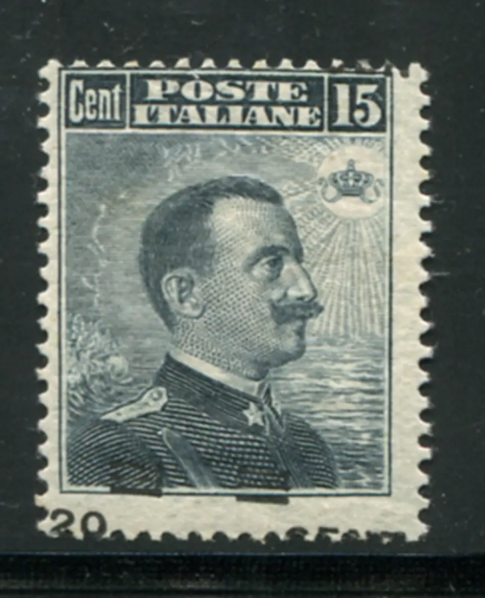Michetti Cent. 25 von 15 in beide Richtungen versetzten Aufdruck Vollgummi - Michetti Cent. 25 auf 15 Nr. 106l schönes Exemplar mit stark in beide Richtungen verschobenem Aufdruck Nahspangen und Ziffer 20 in der unteren linken Ecke - Uncommon Code 141/8