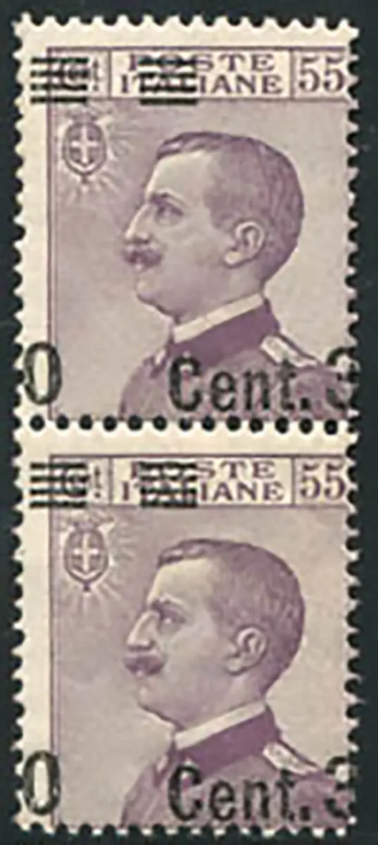 Michetti Cent. 30 von 55 Vierteln mit rechts verschobenem Aufdruck Vollgummi - Michetti Cent. 30 auf 55 Nr. 181fg Viertel mit stark nach rechts verschobenem Aufdruck 0 Cent. 3 - Sorte nicht aufgeführt - Gebraucht Code 149/8