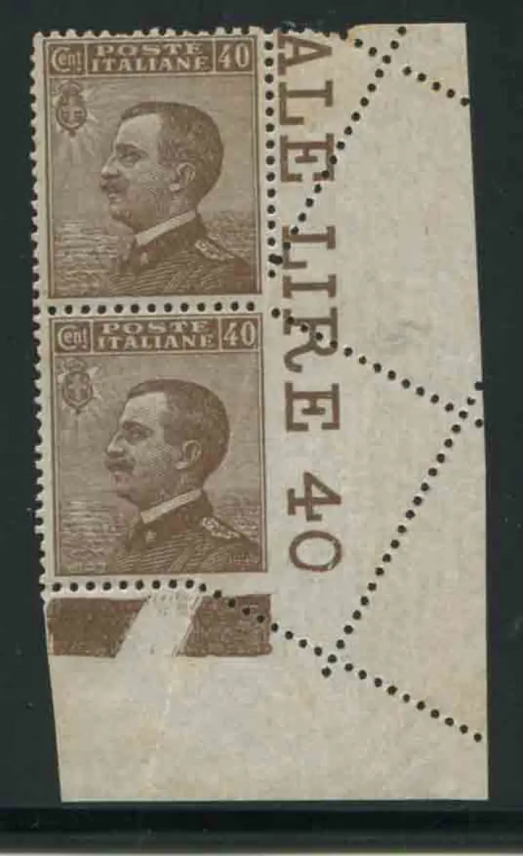 Michetti Cent. 40 Paar, ein ungezahntes Exemplar rechts Sorte Vollgummi - Michetti Cent. 40 n. 84l Paar a. von f. davon rechts ein ungezahntes Exemplar durch Biegen der Folie beim Bohren - leichte Vergilbung - Kat. 400++ Code Nr. 163/4