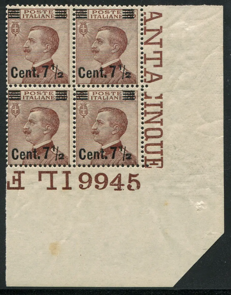Michetti Cent. 7,1/2 von 85 mit Tischnummer 9945 Vollgummi - Michetti Cent. 7,1/2 auf 85 (II. Typ) Nr. 136 Viertel a. von f. mit Tischnummer 9945 - gute Zentrierung - seltene Nr. 242/6