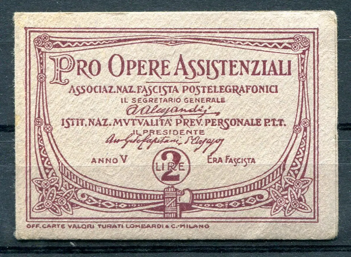 - Milano Pro Opere Assistenziali Postelgrafonici - Libretto da Lire 2 gedruckt vom Off. Lombardische Turati Values Karten mit zwei Marken des Ist. Naz. Mutualit? persönliche Vorsorge P.T.T. (geklebt) - Ungewöhnliche Nr. 131/A