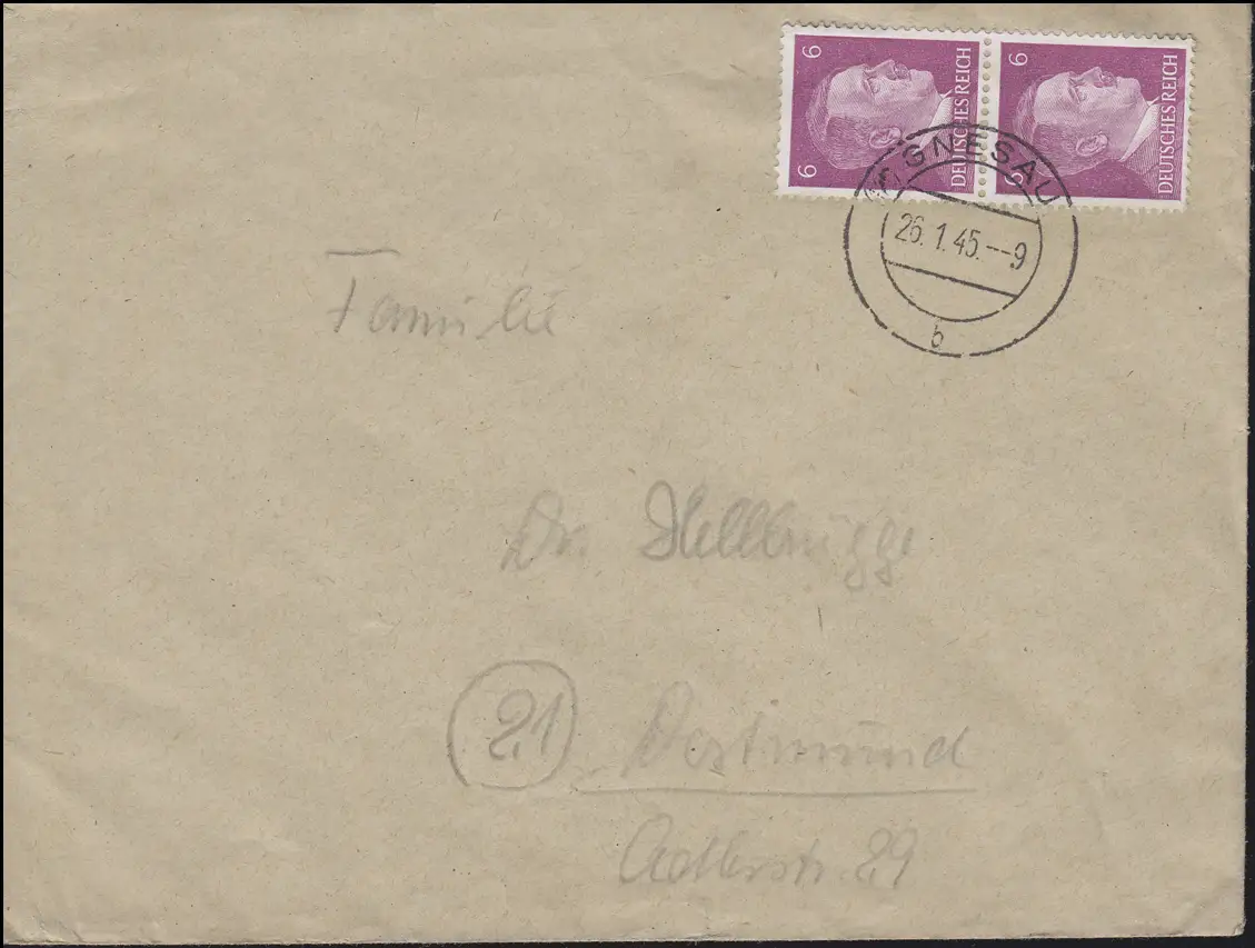 Militär-Brief 785 6 Pf. MeF auf Brief GNESAU bei Villach 25.1.45 nach Dortmund