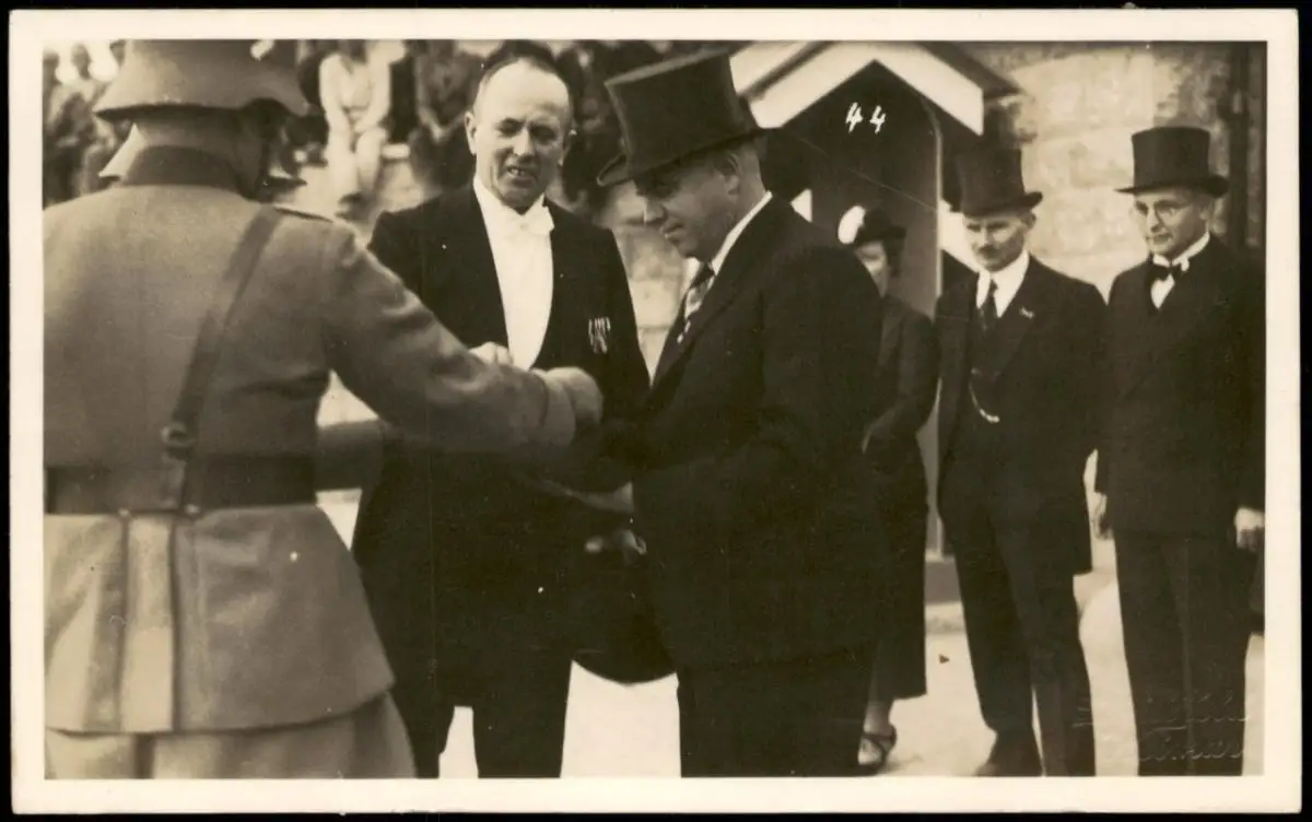 Militär Soldatenleben: Soldat mit Herren Gruppe (Zylinder-Hüte) 1940 Privatfoto