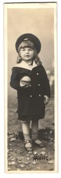 Mini-AK Kleines Mädchen in Matrosenjacke mit Ball