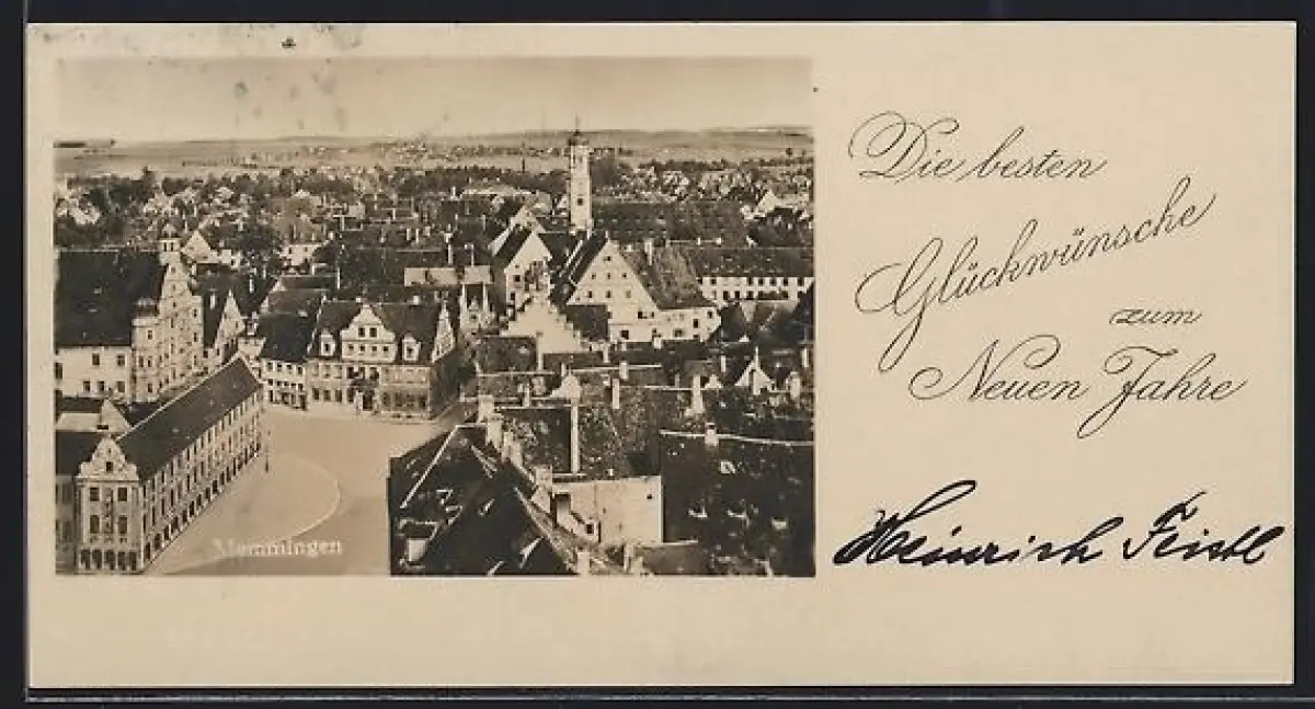 Mini-AK Memmingen, Strassenpartie, Neujahrsgruss