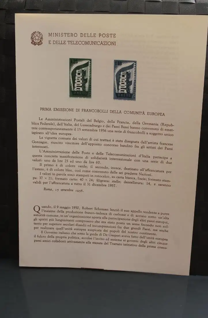Ministerblatt Italien CEPT EUROPA UNION 1956; MiNr. 973-74