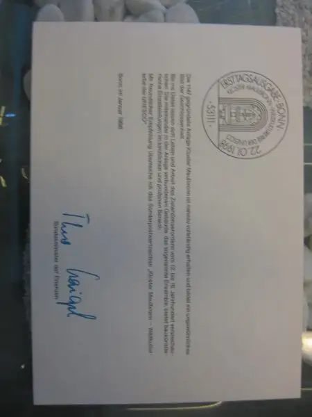 Ministerkarte, Klappkarte klein, Typ V, Maulbronn mit Faksimile-Unterschrift Minister Theo Waigel