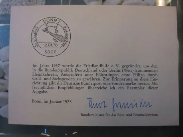 Ministerkarte, Klappkarte klein, Typ V, zur Ausgabe Friedlandhilfe, 1978 mit Unterschrift Minister Kurt Gscheidle
