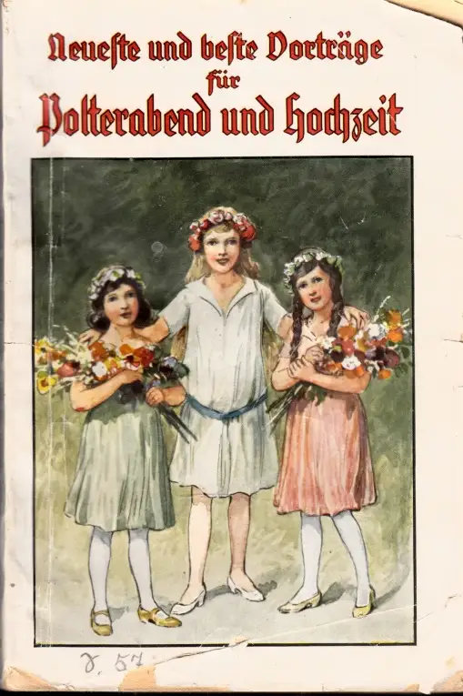 das Buch ist ein Dachbodenfund mit starken Gebrauchsspuren, gebräunt, fleckig, Einbandkanten sind teils ein- und abgeirssen, aus dem Inhalt: Prologe zum Polterabend - Schleiergedichte - Vorträge für mehrere Personen - Vorträge zu Polterabenden vor silbernen Hochszeiten - Vorträge zu Polterabenden vor goldenen Hochzeiten - Hochzeitsgedichte - Hochzeitslieder Beschreibung vom Antiquariat Ardelt 1p3a Antiquariat Ardelt