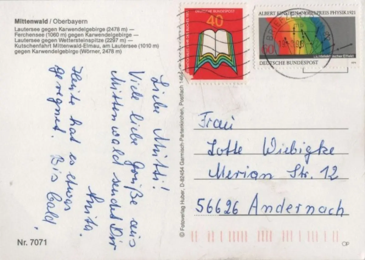 Postleitzahl:82481 (neu) / W 8102 (alt)