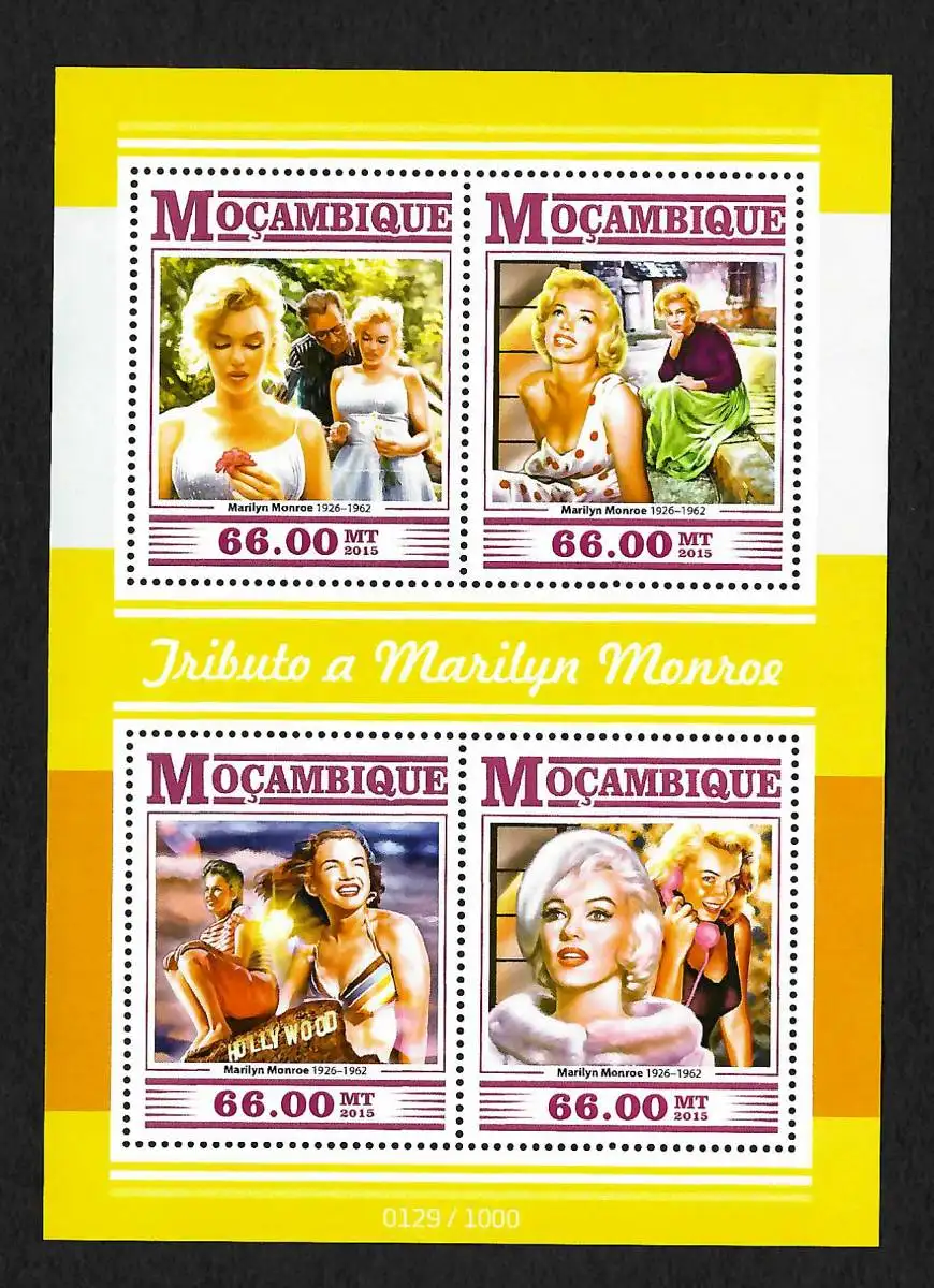 Mocambique: Tribut an Marilyn Monroe, Block mit 4 Marken, postfrisch, 2015