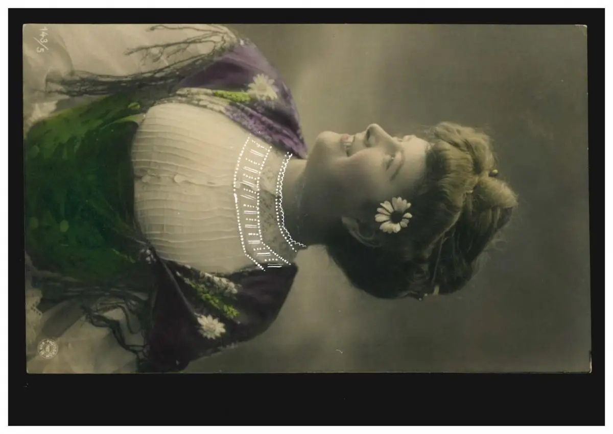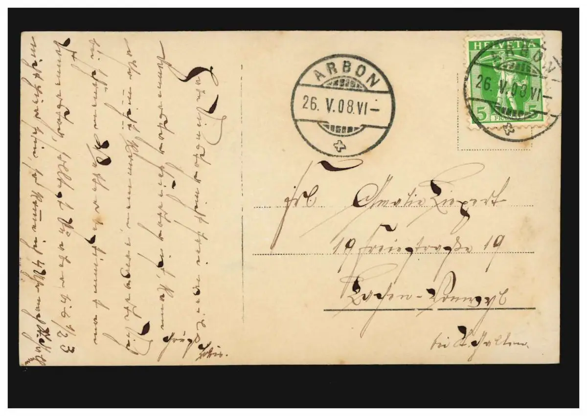 Mode-AK Frau mit Blume im Haar und Halstuch, coloriert, ARBON 26.5.1908