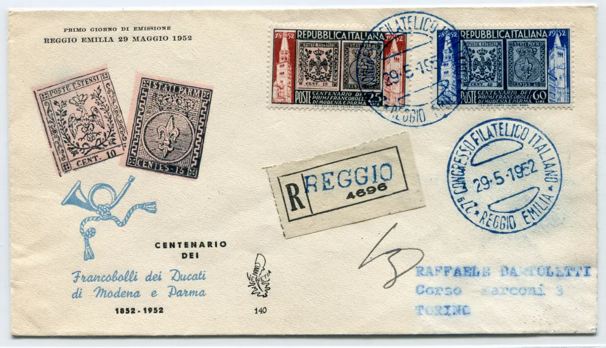 Umschlag - Modena und Parma Nr. 689/690 Serie auf Umschlag Racc. nach Turin mit Ann. Ankunft Cod. 421/14