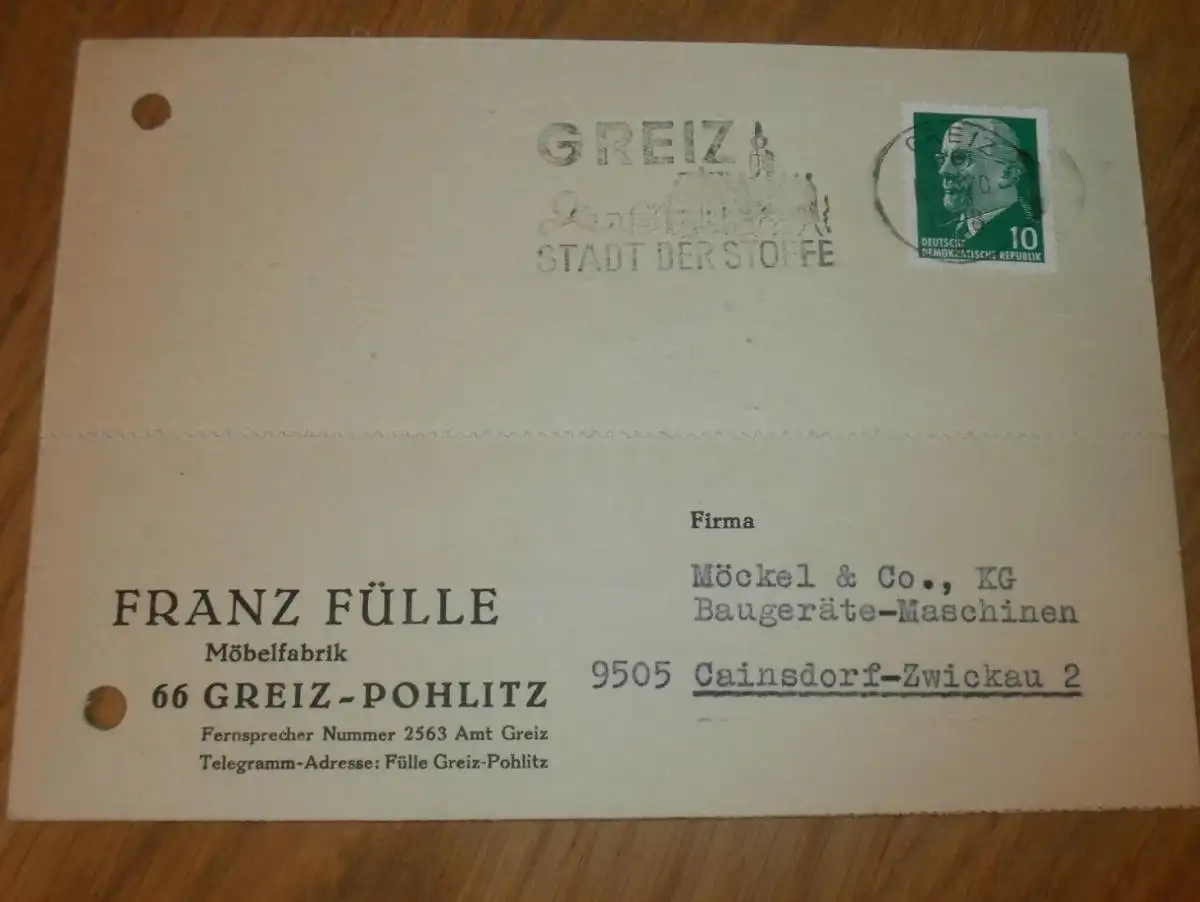 Möbelfabrik - Franz Fülle in Greiz Pohlitz , 1970 , Reklame / Werbung , Ansichtskarte , Postkarte !!AZ-WR/1b