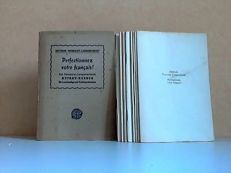 diese Heftchen sind ein Dachbodenfund, gebräunt, fleckig, HEFT 7 FEHLT !!! "Perfectionnez votre frangaisl!" "Vervollständigen Sie ihr Französisch!" DIese ermunternde Aufforderung richtet unser neues Unterrichtswerk an die große Zahl diejenigen, die sich mit der Absiucht tragen, ihre in VErgessenheit geratenen französischen Sprachkenntnisse gründlich aufzufrischen. Insbesondere aber wendet sich dieses Werk an alle, die vor längerer oder kürzerer Zeit einmal mit der Erlernung der französischen Sprache begonnen hatten, dann aber aus irgendwelchen Gründen von ihrem Vorhaben abgekommen sind. ... (aus dem Büchlein) Beschreibung vom Antiquariat Ardelt 4a5b Antiquariat Ardelt