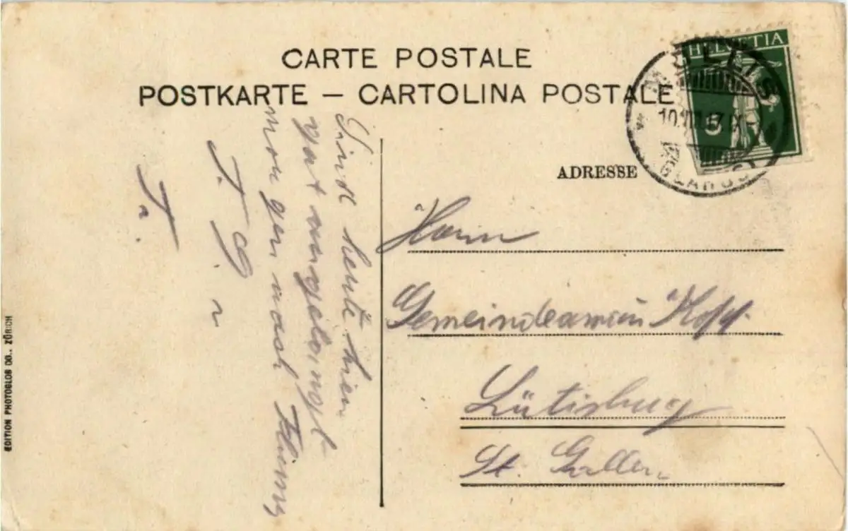 Danke. Alles Bestens. Können Sie mir allenfalls mitteilen, aus welchem Jahr die Postkarte stammt? Besten Dank.