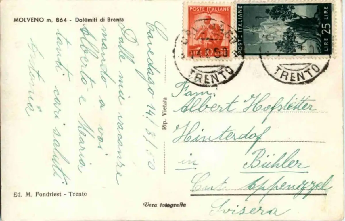 Danke. Alles Bestens. Können Sie mir allenfalls mitteilen, aus welchem Jahr die Postkarte stammt? Besten Dank.