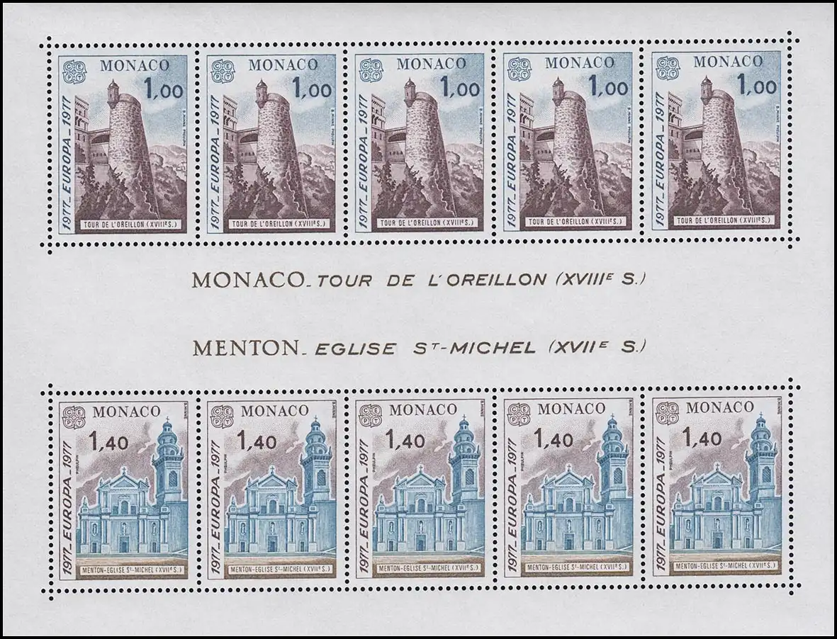 Monaco Block 11 Europaunion: Landschaften 1977 ** / MNH