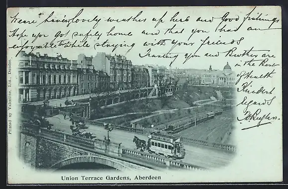 Mondschein-AK Aberdeen, Union Terrace Gardens, Pferdebahn