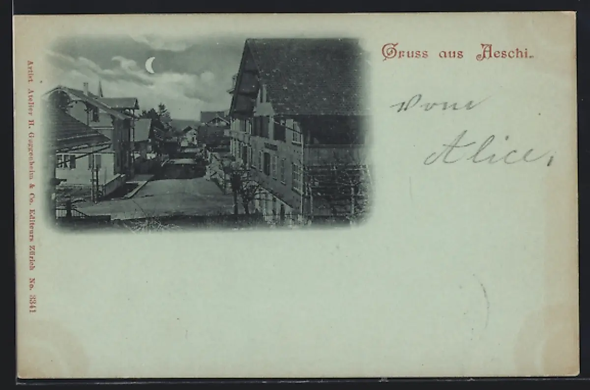 Mondschein-AK Aeschi /BE, Strassenpartie