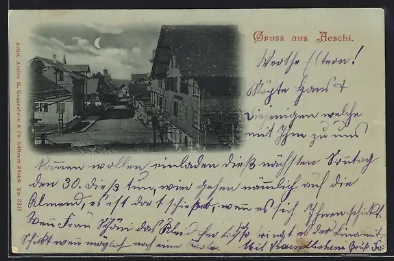 Mondschein-AK Aeschi, Strassenpartie im Ortskern