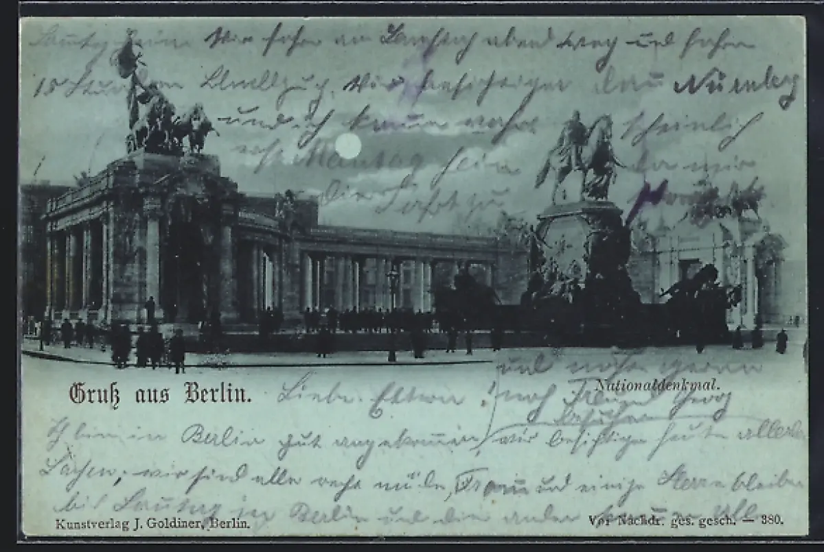 Mondschein-AK Berlin, Blick auf das Nationaldenkmal