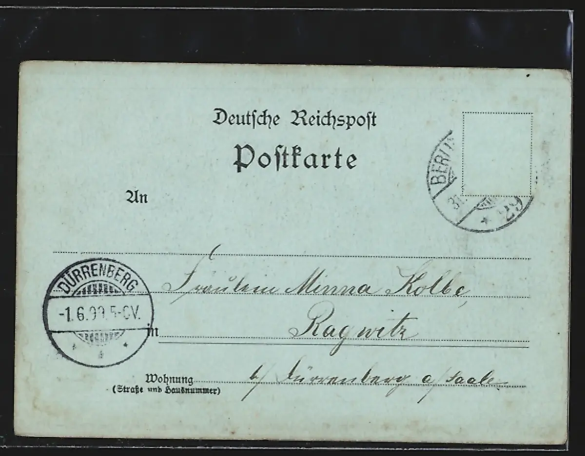 alte Ansichtskarte, gelaufen 1899, Briefmarke entfernt, guter Zustand