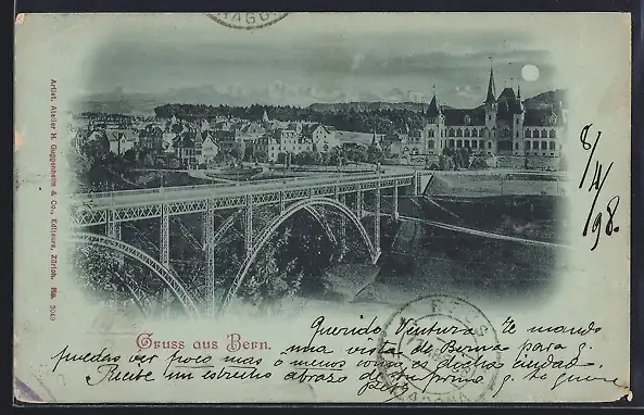 Mondschein-AK Bern, Teilansicht mit Brücke