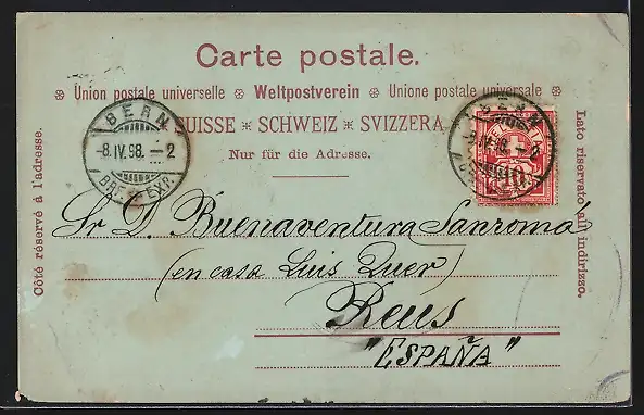 alte Ansichtskarte, gelaufen 1898, Eckknicke li. oben u. re. unten, minimaler Einriss re. mittig, minimaler Eckschaden re. unten