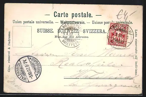 gelaufen 1902, Eckknicke li. unten u. re. oben, Bugspuren unten li. u. re., minimaler Einriss re. oben, guter Zustand