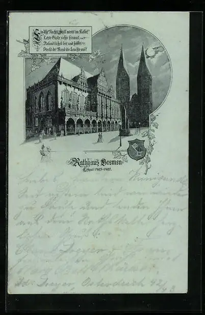 Mondschein-AK Bremen, Rathaus mit Gasthaus Ratskeller