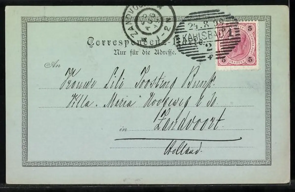 gelaufen 1899, Eckknick rechts oben, guter Zustand